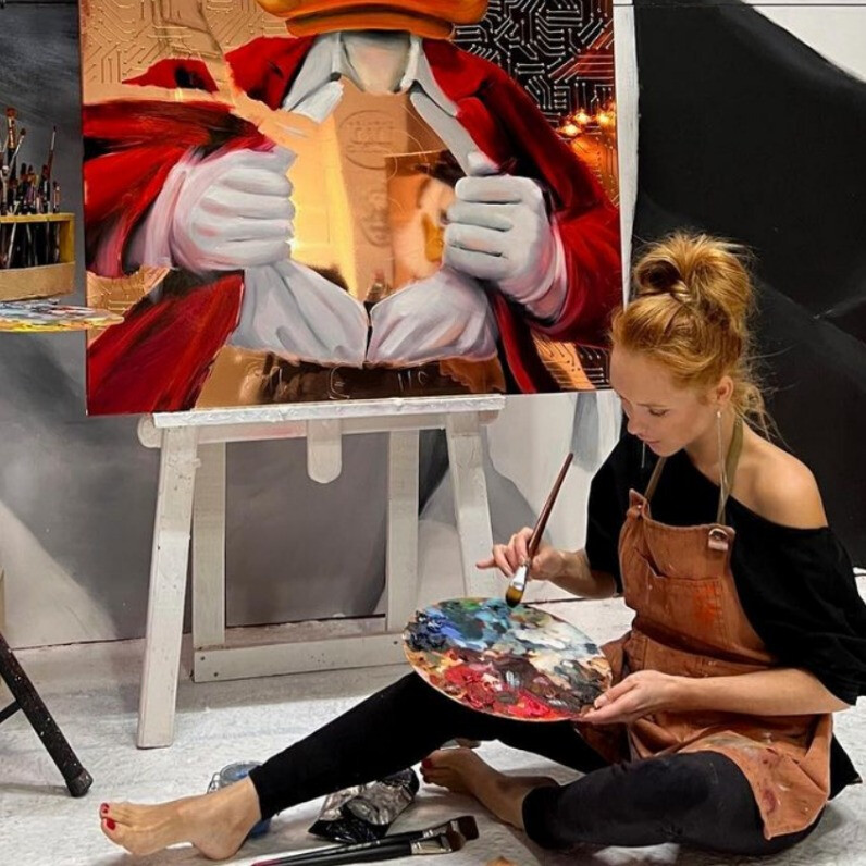 “when I selected the material-canvas for my work, the choice for copper fell not by chance. Well, firstly, I have copper hair color and canvases – copper. But of course, this is not the only reason😁 Copper is a unique metal with an interesting history.”